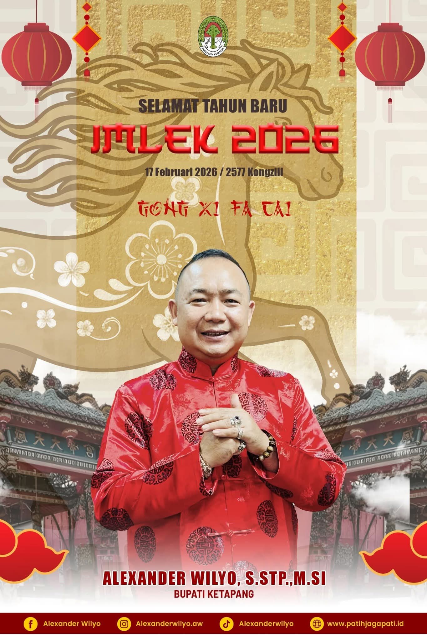 Bupati Aleksander Wilyo, S.STP.,M.SI capan Selamat Tahun Baru Imlek 2026 – Gong Xi Fa Cai, Tahun Kuda Api