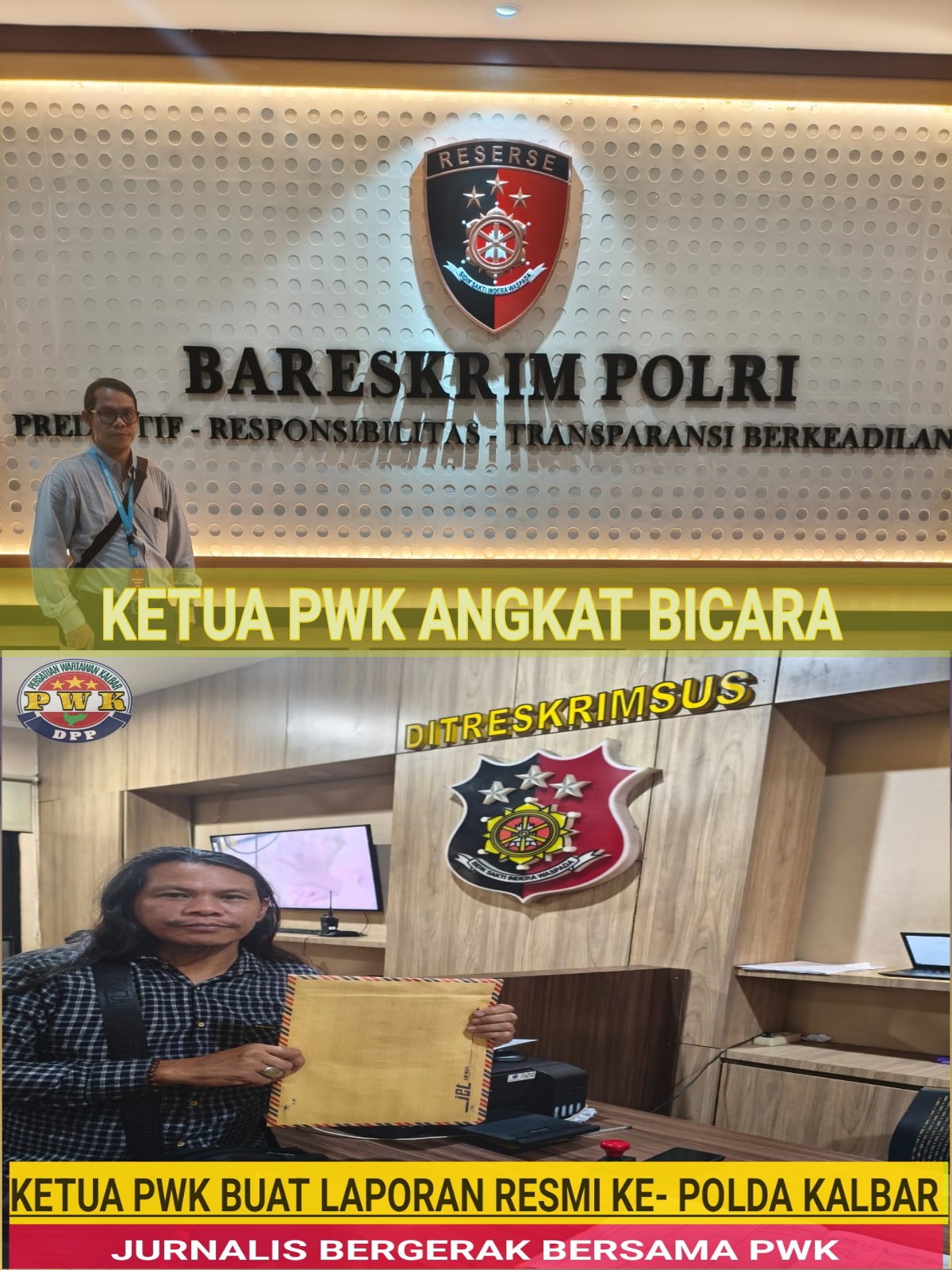 Ketapang, pwk. or. id Kalimantan Barat – Pemberitaan kasus dugaan jual beli proyek di Dinas Perkim LH Ketapang terus bergulir. Ketua Persatuan Wartawan Kalbar (PWK), Verry Liem, melaporkan kasus ini ke Bareskrim Polri. Langkah ini diambil menyusul viralnya pemberitaan mengenai dugaan tersebut dan laporan terhadap tiga media ke Dewan Pers.