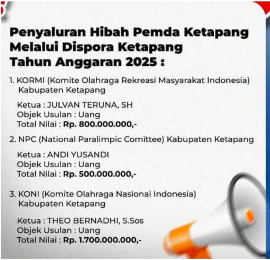 Penyaluran anggaran hibah sebesar total Rp3 miliar dari Pemerintah Kabupaten Ketapang melalui Dinas Pemuda dan Olahraga (DISPORA) kepada tiga lembaga keolahragaan menjadi perbincangan hangat, dengan pro dan kontra dari berbagai pihak terkait efektivitas penggunaan dana serta urgensi transparansi yang lebih tinggi.